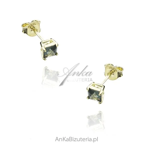 Kolczyki srebrne pozłacane z oliwkową cyrkonią