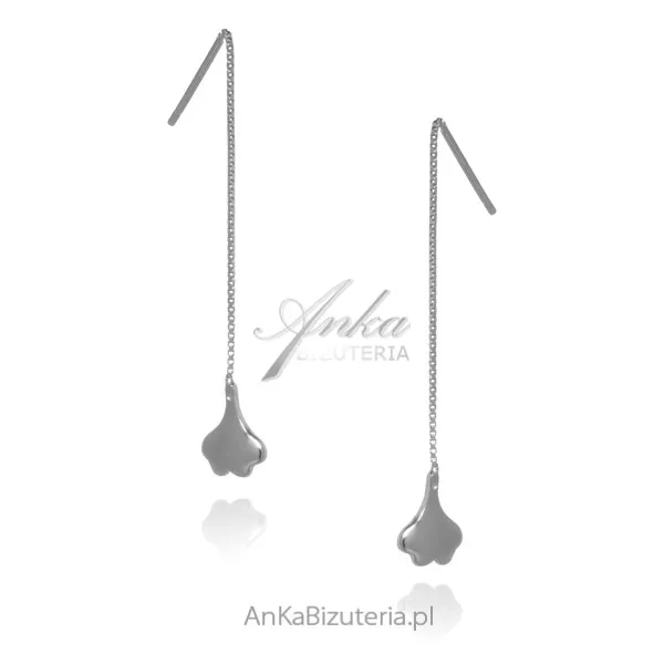 Kolczyki srebrne przeciągane miłorząb