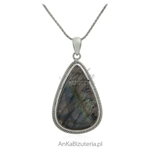 Piękna zawieszka srebrna z labradorytem - unikatowa bizuteria