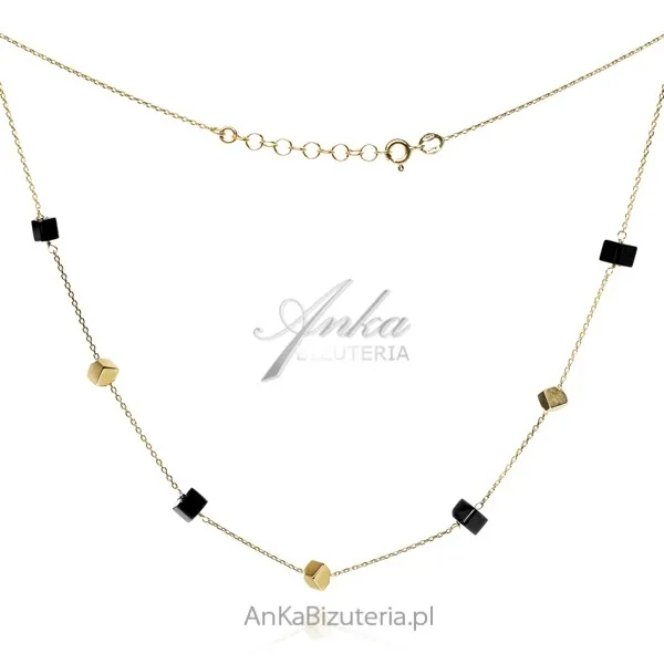 Naszyjnik srebrny pozłacany z onyksowymi kosteczkami