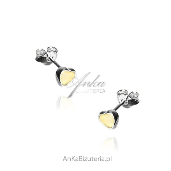 Kolczyki srebrne z bursztynem serduszka