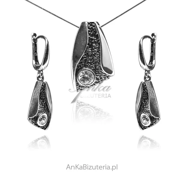 Biżuteria srebrna komplet oksydowany z cyrkonią