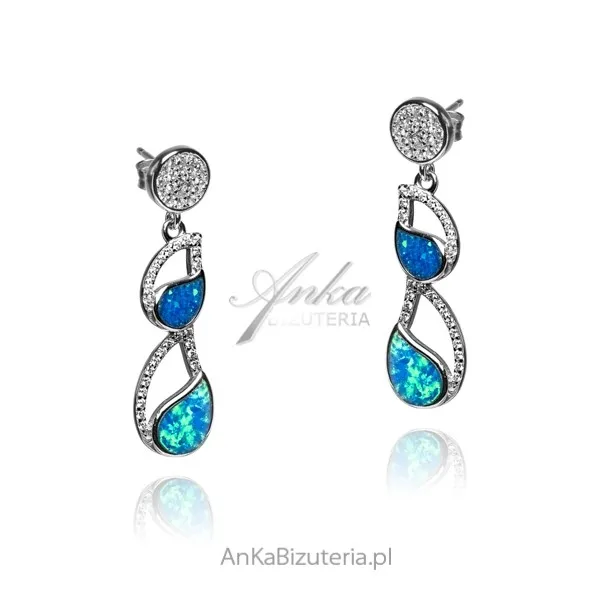Kolczyki srebrne z niebieskim opalem i cyrkoniami