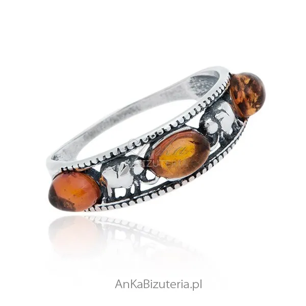 Pierścionek srebrny z bursztynem ze słonikiem , rozmiar - 17