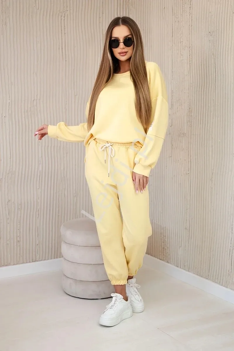 Pastelowo żółty komplet z wiskozy bluza + spodnie , dres masełko 7065P Life Is Not Perfect
