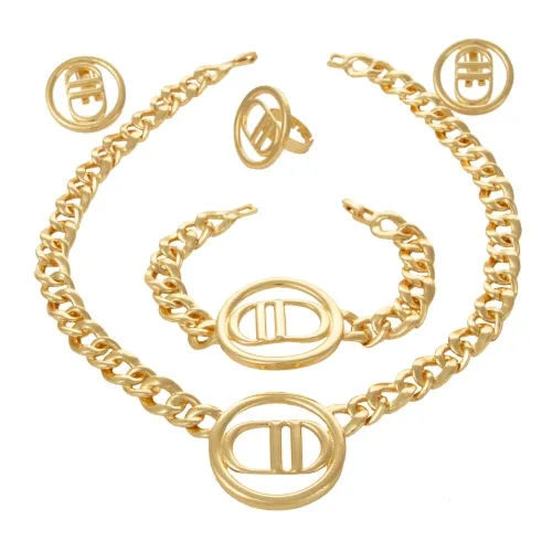 Komplet,dwa romby , wysadzane cyrkoniami , motyw grecki. wymiary łańcuszek 23,0 x 0,3 cm, kolczyki długość 2,5 cm. Warstwa złota naniesiona w metodzie – PVD- napylanie próżniowe jonami tytanu, czy też azotkiem tytanu jest nowoczesną metodą nanoszenia powłok o bardzo dużej trwałości. * Pokryte jest w całości 4 – 8 mikronową warstwą 14K, 18K i 24K złota. * Warstwa złocenia pokryta jest lakierem jubilerskim, który zabezpiecza powłokę złota przed ścieraniem i nadaje wspaniały połysk * Biżuteria wykonana ze stali szlachetnej-należy do grupy stali o strukturze austenitycznej ( podobna chirurgiczna 316 L) : – jest hipoalergiczna i nie uczula, ponieważ nie emituje związków niklu do organizmu – nie koroduje, nie odbarwia się i długo cieszy swoim blaskiem – ścieralność uzależniona od noszenia i od pH ciała – nie wymaga specjalnej konserwacji jak biżuteria ze srebra, czy złota Ze względu na różne ustawienia monitorów oraz różną jakość wyświetlaczy zastosowanych w urządzeniach mobilnych, kolory przedstawione na zdjęciach mogą nieznacznie różnić się od rzeczywistych.