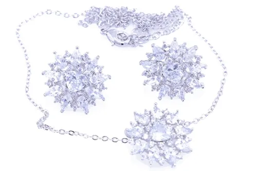 Komplet w kolorze srebrnym z łańcuszkiem, wzór gwiazdka ozdobiona cyrkoniami. * Warstwa srebra naniesiona w metodzie electroplated * Pokryte jest w całości 4 – 8 mikronową warstwą srebra pr. 925 * Warstwa srebrzenia pokryta jest lakierem jubilerskim, który zabezpiecza powłokę srebra przed ścieraniem i nadaje wspaniały połysk * Biżuteria wykonana ze stali szlachetnej-należy do grupy stali o strukturze austenitycznej ( podobna chirurgiczna 316 L) : – jest hipoalergiczna i nie uczula, ponieważ nie emituje związków niklu do organizmu – nie koroduje, nie odbarwia się i długo cieszy swoim blaskiem – ścieralność uzależniona od noszenia i od pH ciała – nie wymaga specjalnej konserwacji jak biżuteria ze srebra, czy złota