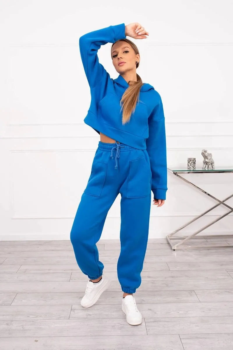 Komplet ocieplany z krótką bluzą chabrowy