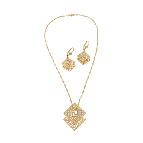 Komplet,dwa romby , wysadzane cyrkoniami , motyw grecki
