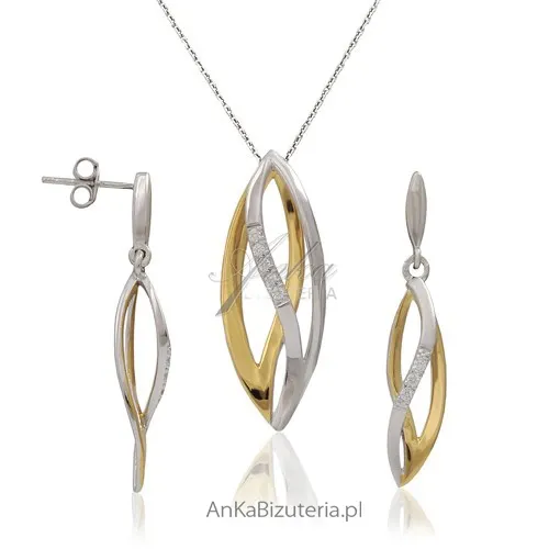 Vanessa - komplet srebrny i złocony z mikro cyrkoniami