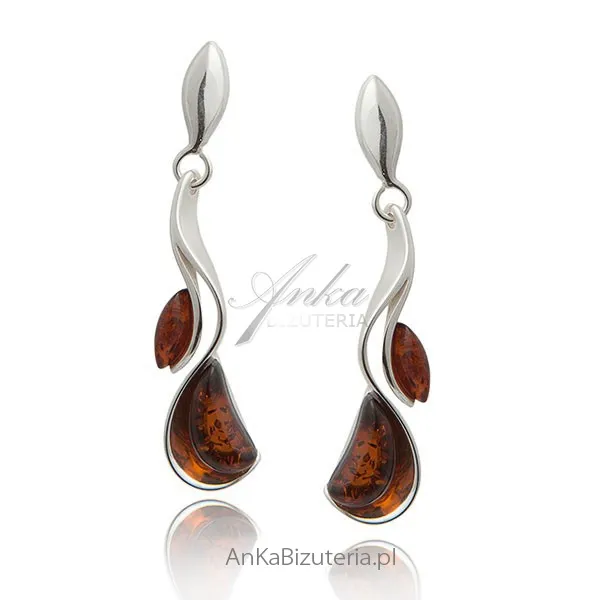 Kolczyki srebrne z bursztynu - rosa o poranku"