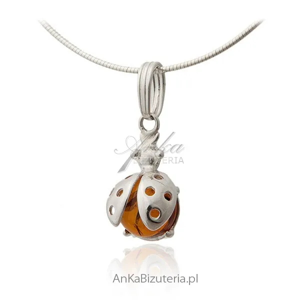 Wisiorek srebrny z bursztynem - biedroneczka