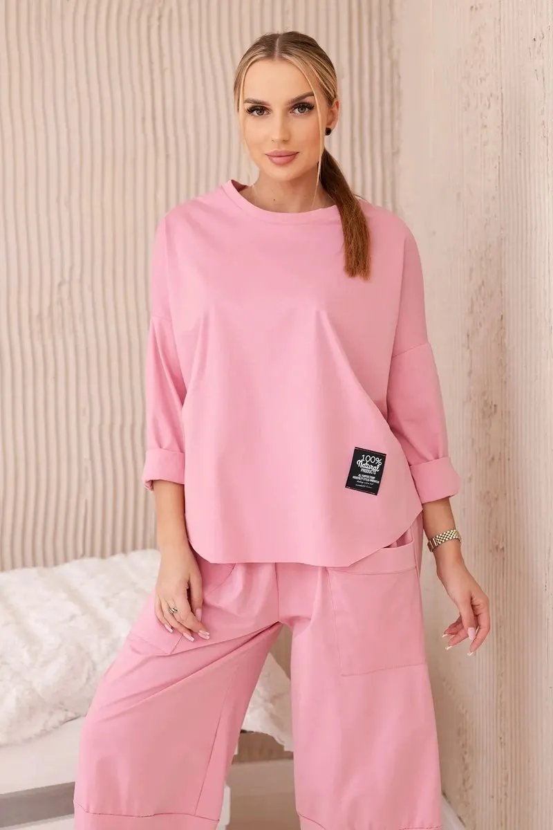 Komplet new punto bluza + spodnie ciemny pudrowy róż