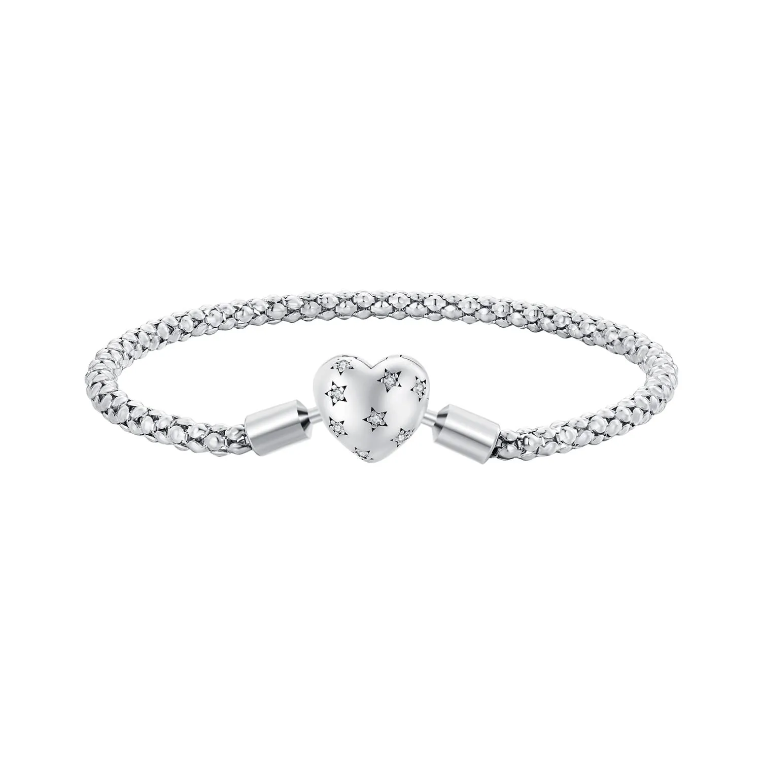 Srebrna bransoletka modułowa 17cm serce gwiazdki