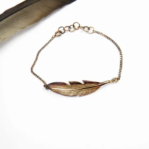 Pióro na łańcuszku brązowe - srebrna bransoletka
