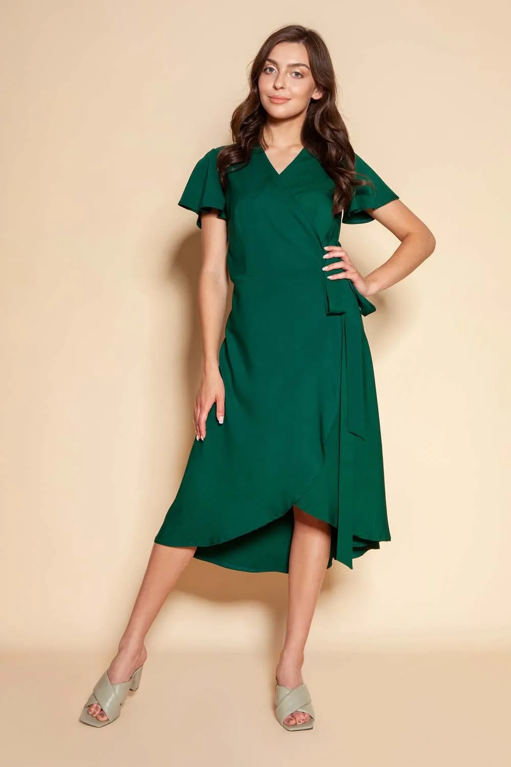 Kopertowa Sukienka z Asymetrycznym Dołem - Zielona