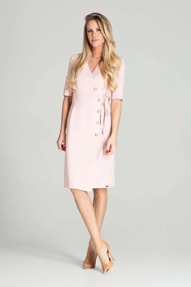 Kopertowa Sukienka z Krótkim Rękawem - Różowa