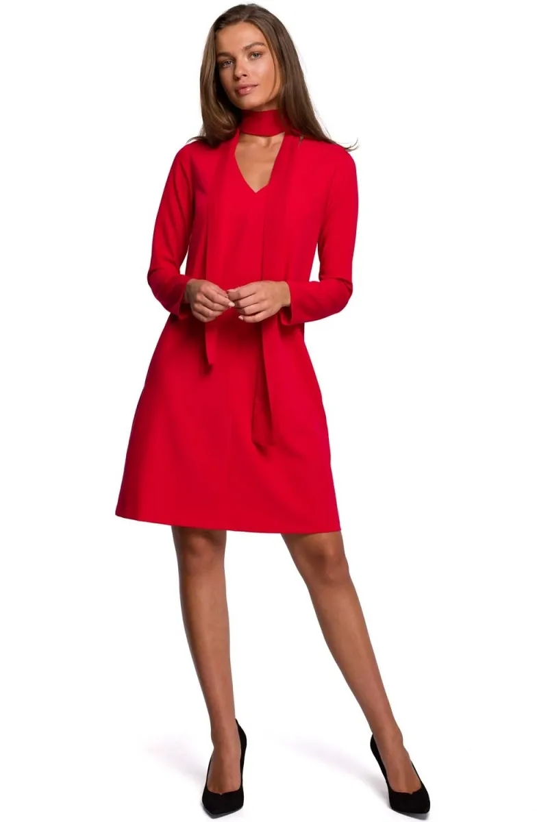 Trapezowas sukienka z ozdobnym dekoltem - czerwona - Rozmiar: XXL