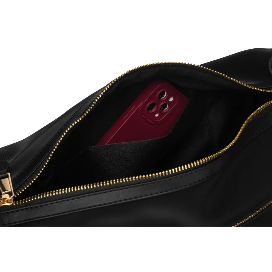 Czarna kopertówka to kwintesencja elegancji i ponadczasowego stylu. Wykonana ze skóry ekologicznej najlepszej jakości. Zapinana na zapięcie magnetyczne i zawieszona na długim, nieregulowanym łańcuszku.