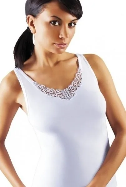 Koszulka damska- dekolt zdobi wstawka efektownej gipiury- szerokie ramiączka Skład: 100% bawełna…