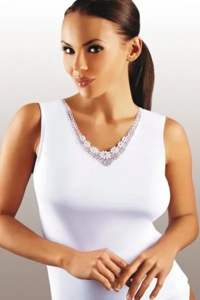 Koszulka z miękkiej bawełny, obszyta połyskującymi lamówkami. Dekolt w serek ozdobiony gipiurą o kwiatowym motywieSkład: 100% bawełna…