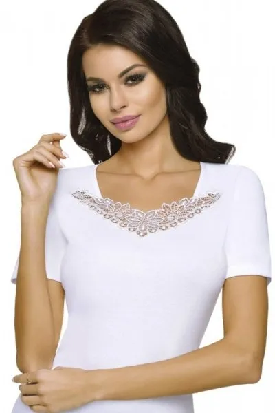 Koszulka z miękkiej w dotyku bawełny, z krótkim rękawem. Dekolt ozdobiony efektowną gipiurą.Skład: 100% bawełna…