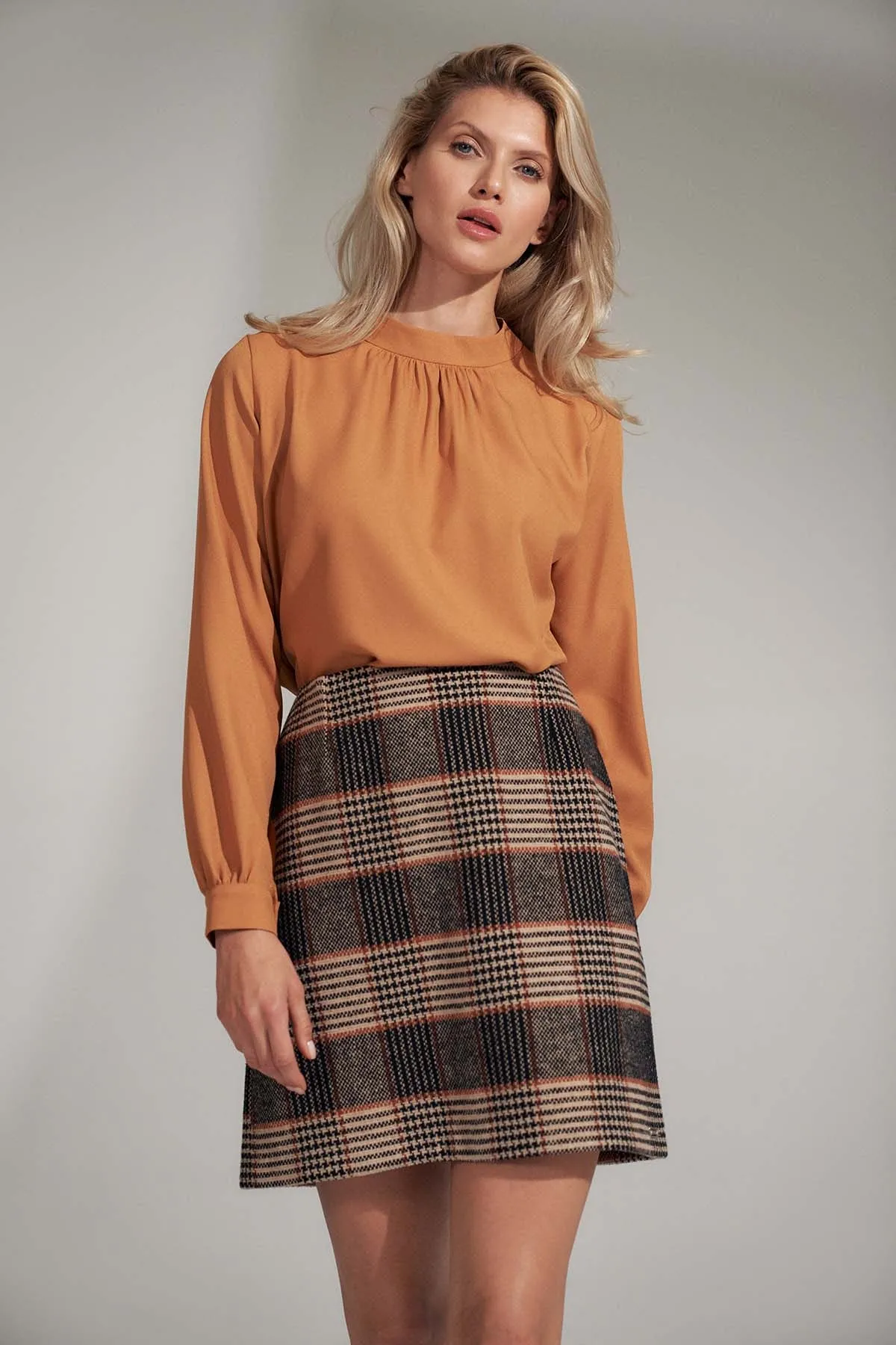 Bluzka na Stójce z Marszczeniem - Brązowa