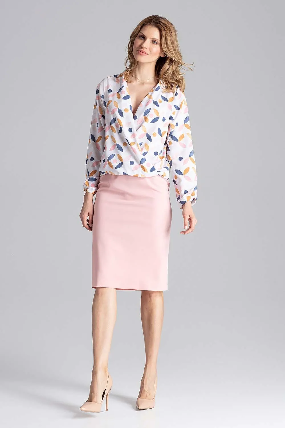 Kopertowa Wzorzysta Bluzka z Gumka na Dole