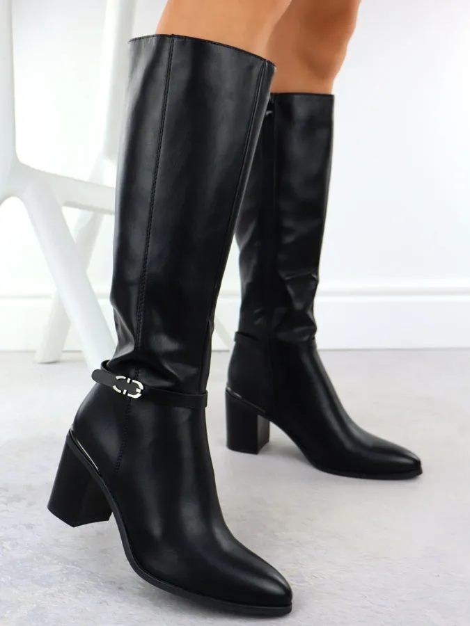 Kozaki damskie na słupku ocieplane czarne Sergio Leone 25738
