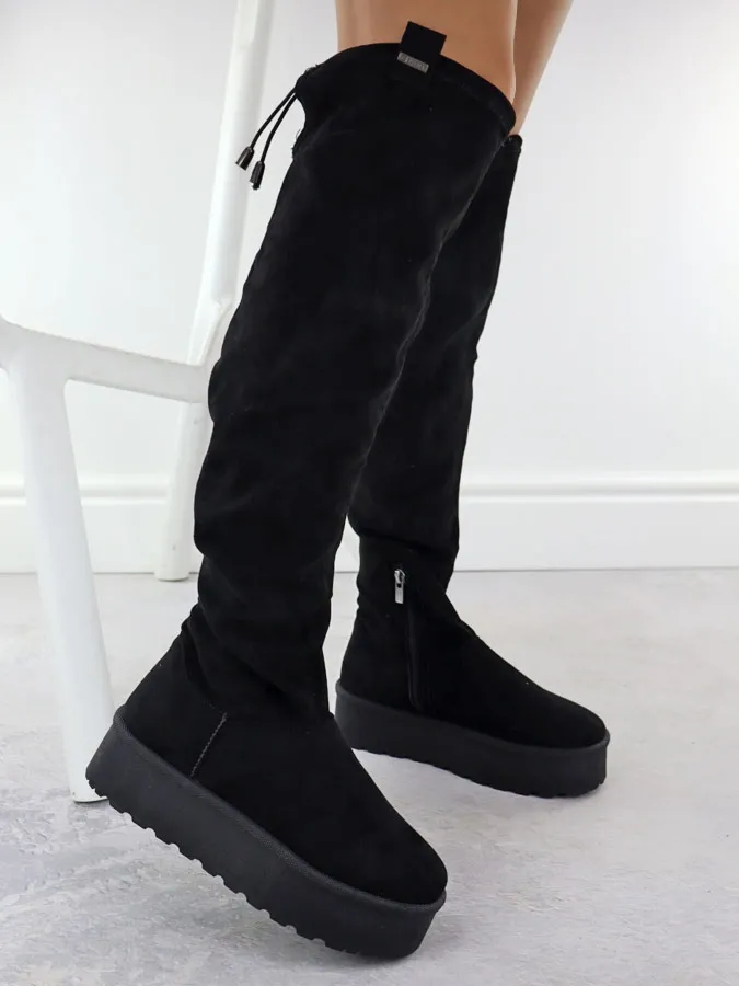 Kozaki damskie na platformie zamszowe czarne Big Star SS274264
