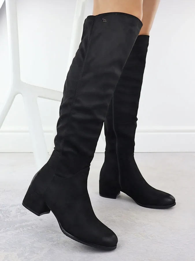 Kozaki zamszowe na klocku damskie czarne T.Sokolski Z24-142
