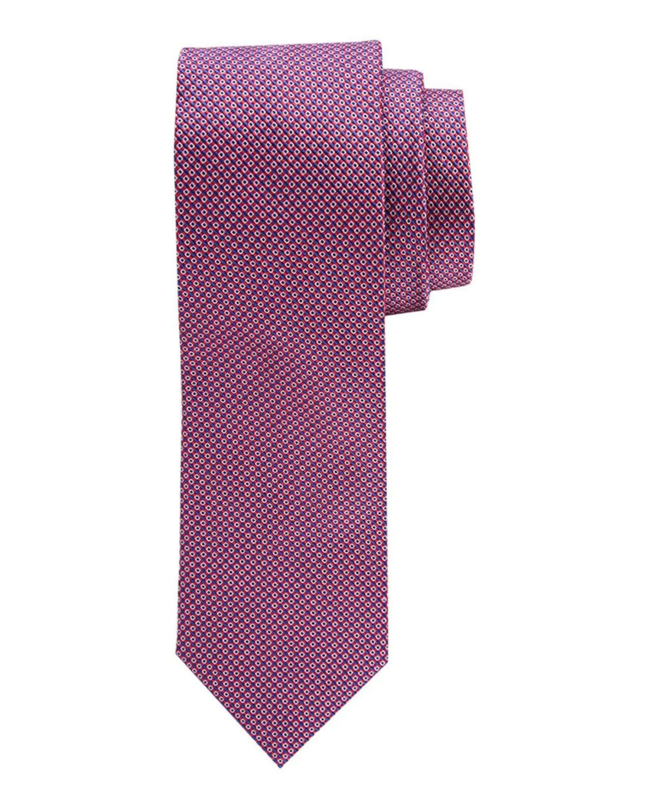 Elegancki czerwony krawat Profuomo w białe i granatowe kropki
