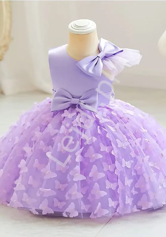 Krótka lawendowa sukienka z motylkami wieczorowa dla dziewczynki m133