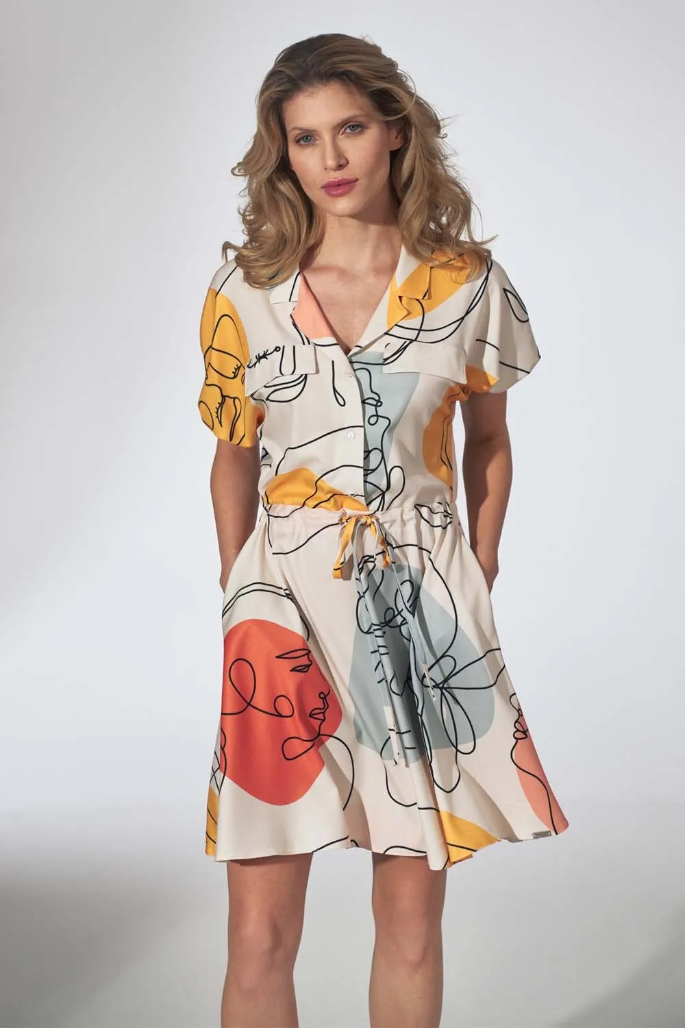 Dziewczęca Sukienka Kimonowa z Kołnierzykiem - Wzór 123