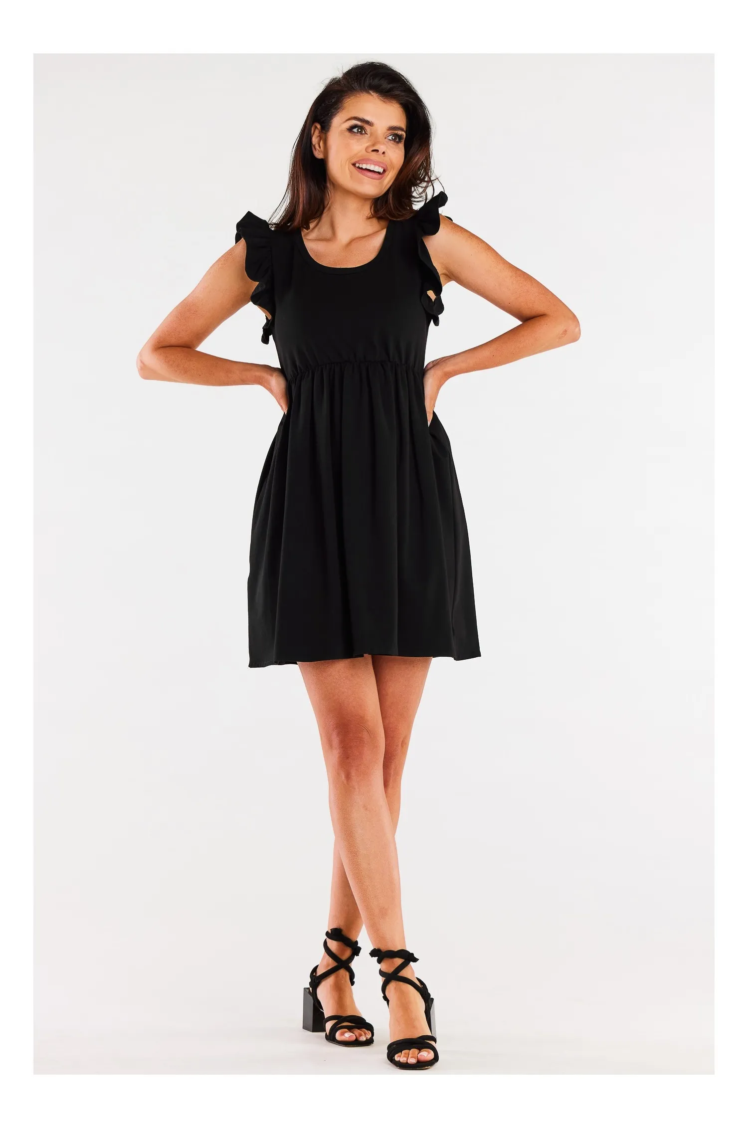 Krótka sukienka z falbankami na ramionach - czarna - Rozmiar: M