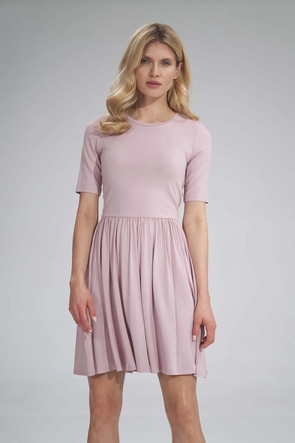 Krótka Wiskozowa Sukienka na Lato - Różowa