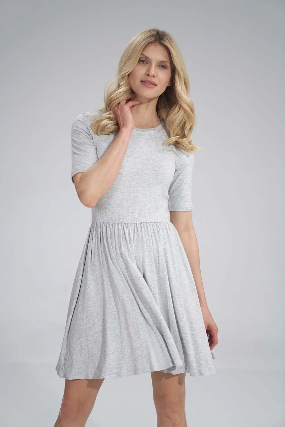 Krótka Wiskozowa Sukienka na Lato - Szara Melanż