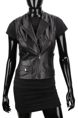 JAG450 - czarna kamizelka skórzana damska jak ramoneska DORJAN