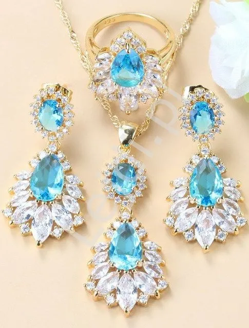 Luksusowy zestaw z niebieskim kryształem pozłacany 3 częściowy