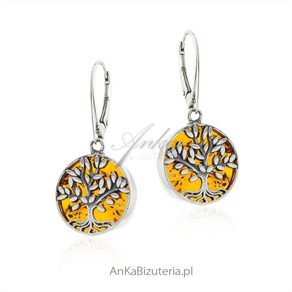 Kolczyki srebrne z bursztynem - drzewko szczęścia