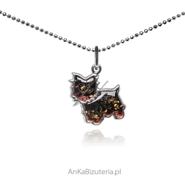 Srebrna zawieszka z bursztynem wiśniowym z łuskami pudelek