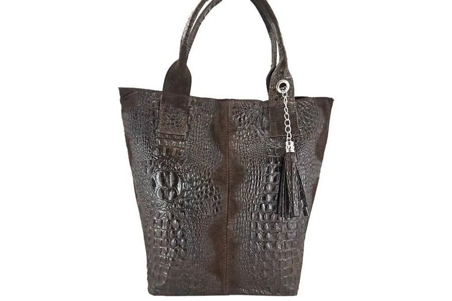 Modny kuferek skórzany został wyprodukowany we Włoszech, wykonany ze skóry naturalnej. Klientki sklepu Barberini’s poszukujące modnych dodatków eleganckiej garderoby znajdą propozycje idealne na każdą okazję. Modny kuferek skórzany, w stonowanych kolorach, z delikatnymi srebrnymi ozdobami, na wygodnej długości uchwycie podkreśli styl kobiet podążających za najnowszymi trendami, dbających o każdy szczegół stylizacji.