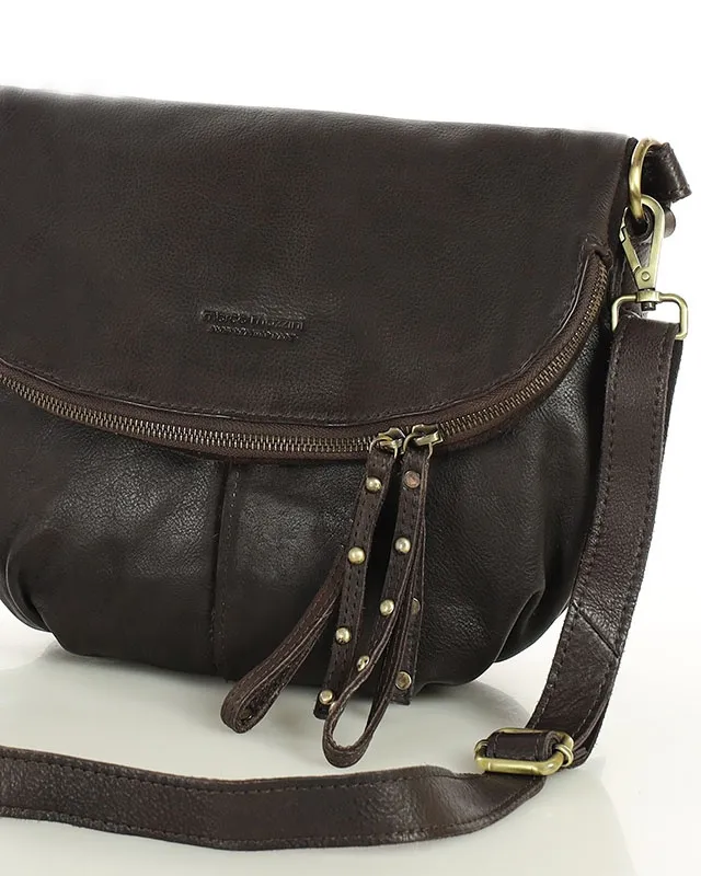 Torebka na ramię listonoszka duża skórzana - MARCO MAZZINI brąz czekolada