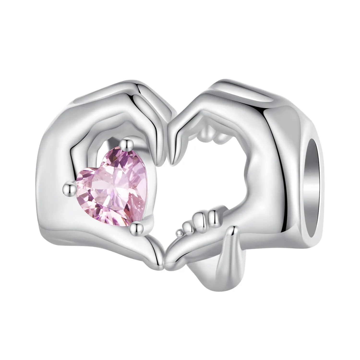 Dłonie mamy złożone w kształt serca srebrny charms koralik
