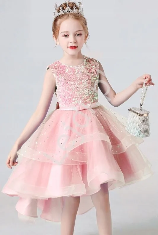 Jasno różowa sukienka dla dziewczynki z cekinami, gwiazdkami A88