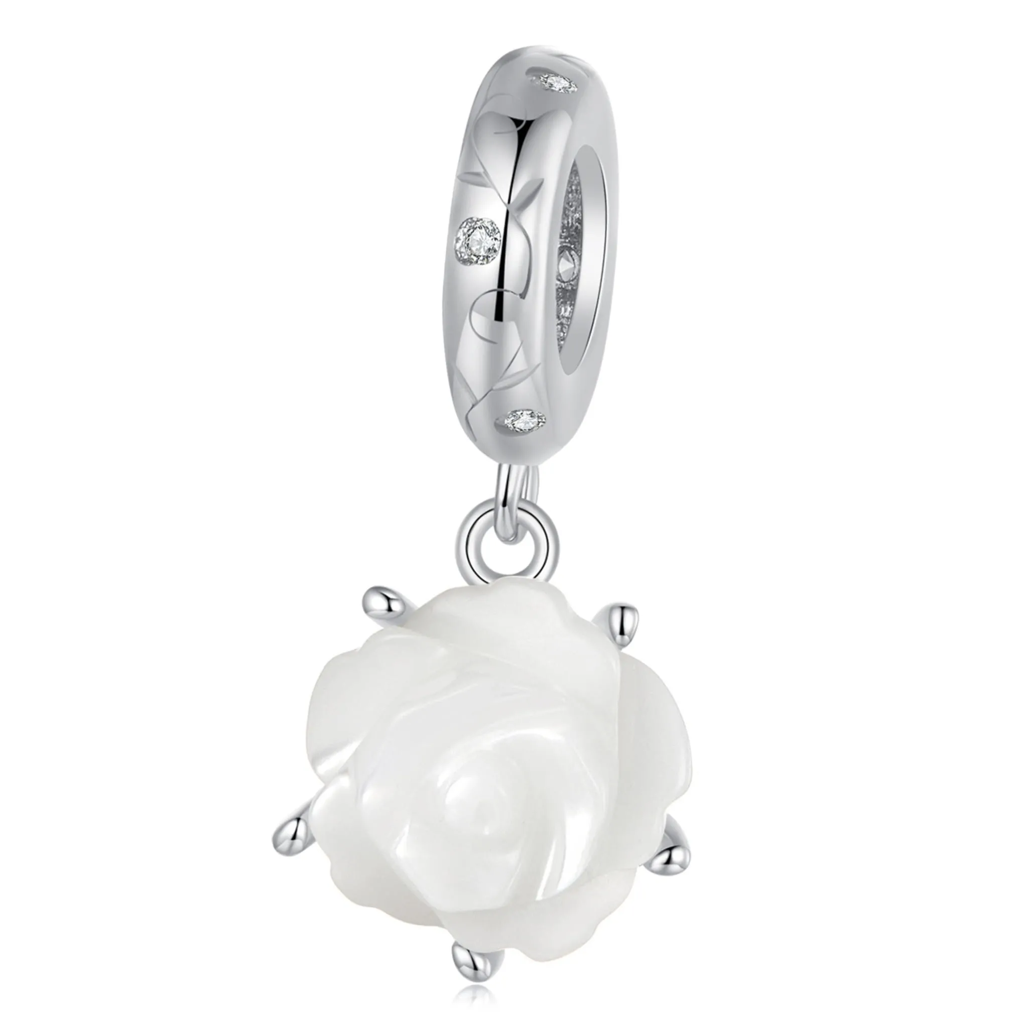 Srebrna zawieszka biała różyczka srebro 925 beads koralik