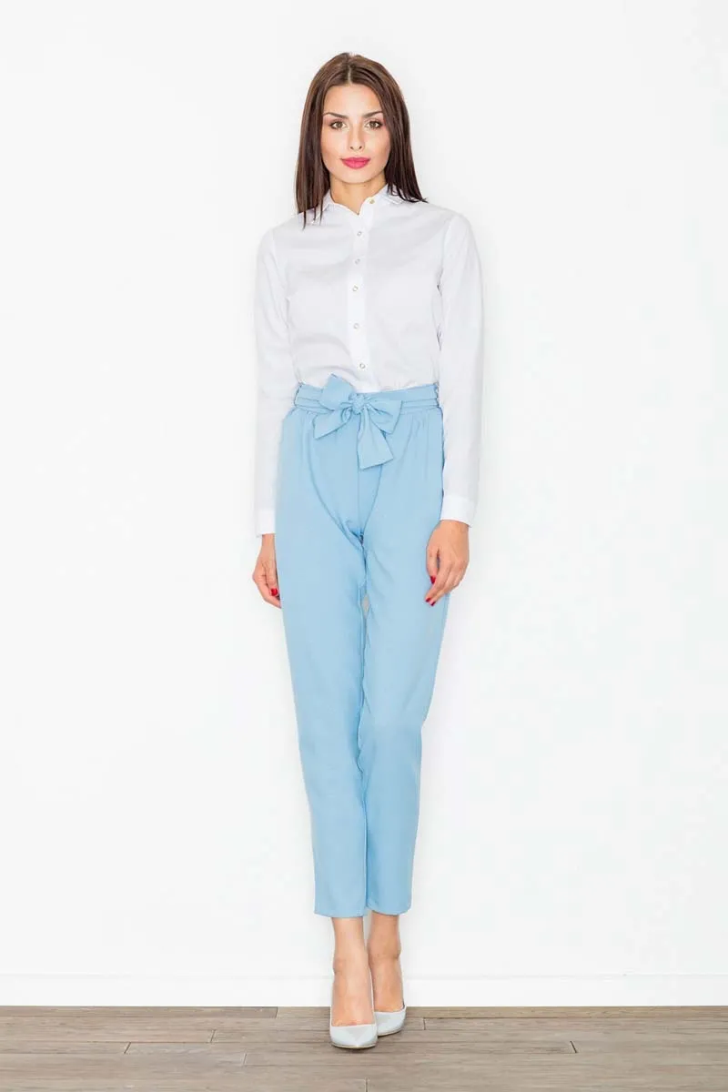 Lekkie Błękitne Marszczone Spodnie z Kokardą w Pasie
