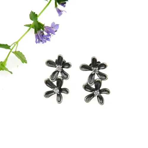 Kolczyki z dwoma kwiatkami szarymi - Subtell II na sztyftach