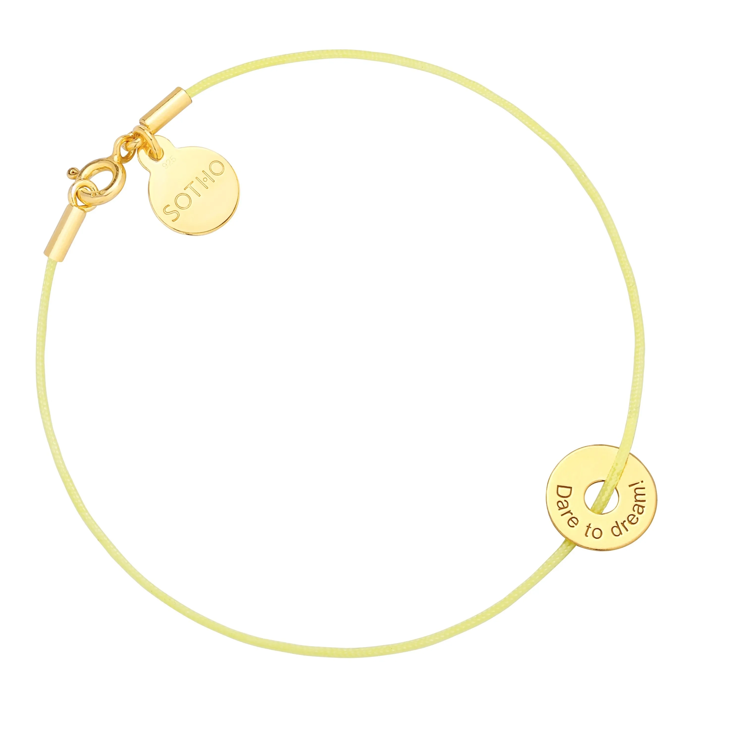 Żółta pastelowa sznurkowa bransoletka z karmą Dare to dream!