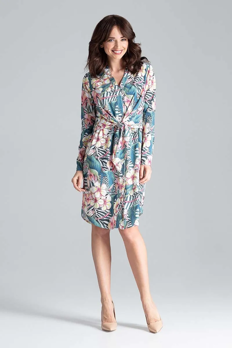 Koszulowa Sukienka z Wiązaniem w Pasie - Wzór 104